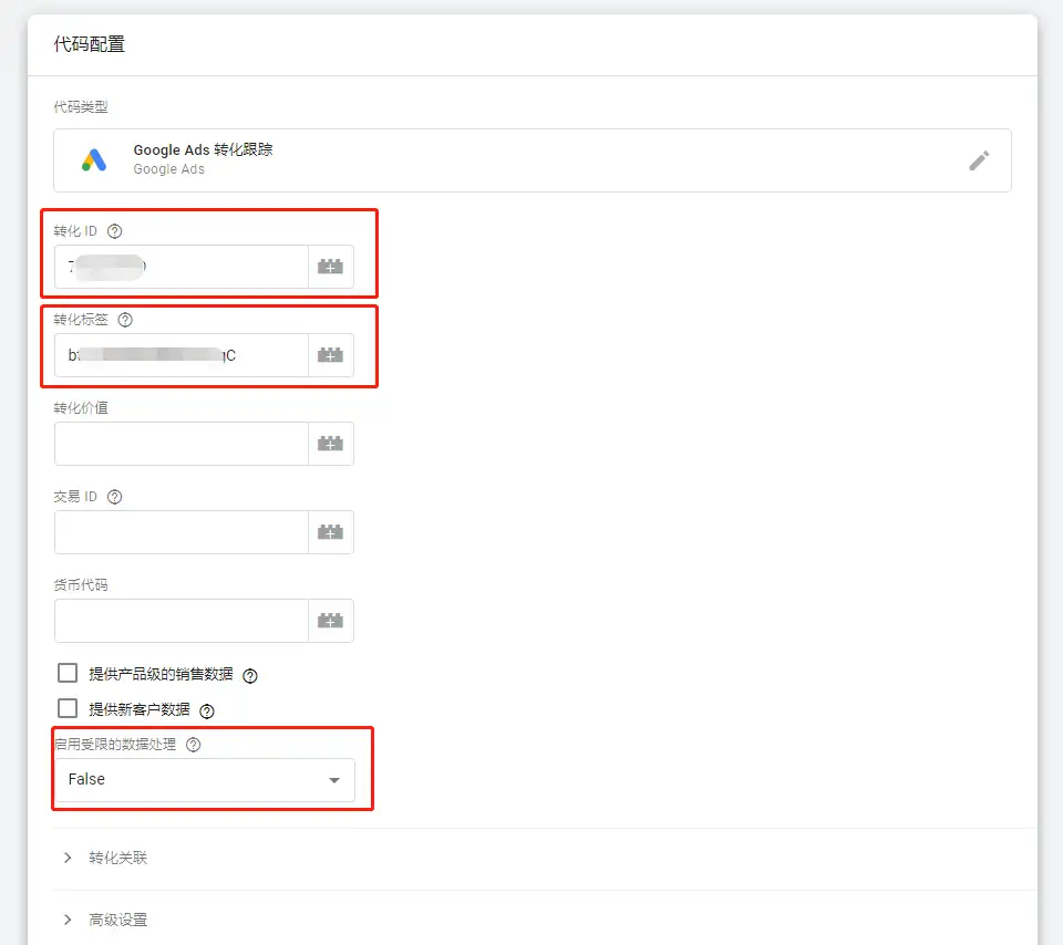 17、把複製的轉化ID和轉化標籤粘貼,選擇False