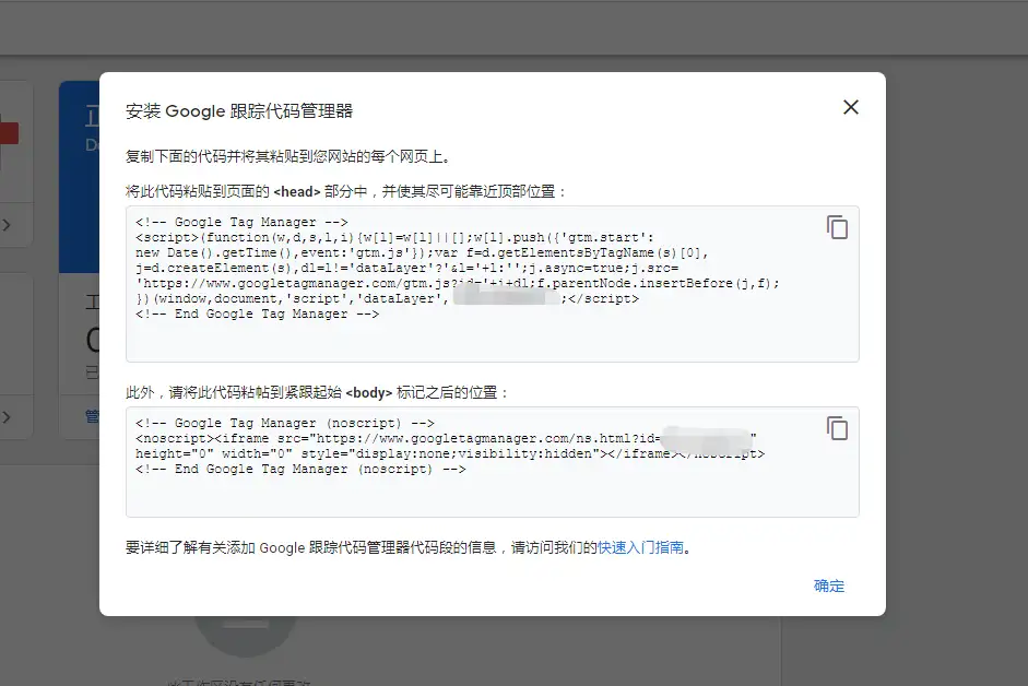 7、出現程式碼彈窗,在網站添加程式碼