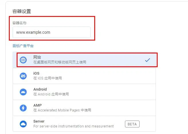 4、輸入網站網址,目標廣告平臺選擇網站