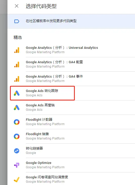 16、選擇Google Ads轉化跟踪